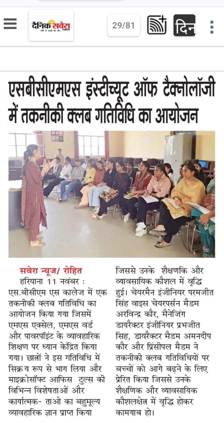 SBCMS Institute of Technology was started in year 1997 with its pious mission to promote technical education in the area of Attalgarh (Mukerian), District Hoshiarpur & its surrounding areas to provide opportunity to young boys & girls to assert themselves and overcome the challenges of the 21st century in the field of technology. SBCMS Polytechnic College is conveniently located at a distance of 2KM from the heart of the city, Mukerian. The College is affiliated to the Punjab State Board of Technical Education and Industrial Training, Chandigarh and is recognized by All India Council of Technical Education (AICTE), Government of India, New Delhi and Punjab Government.